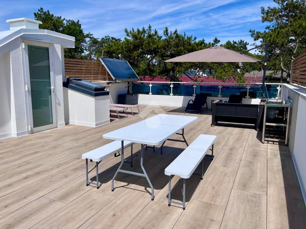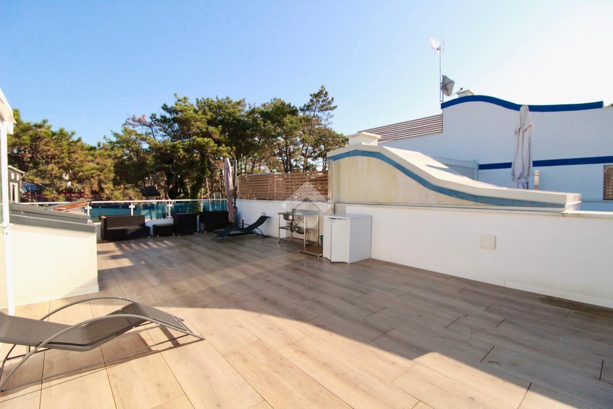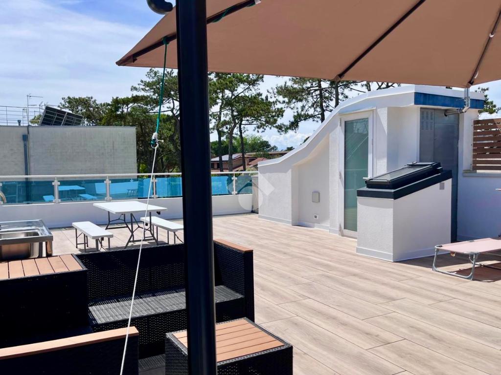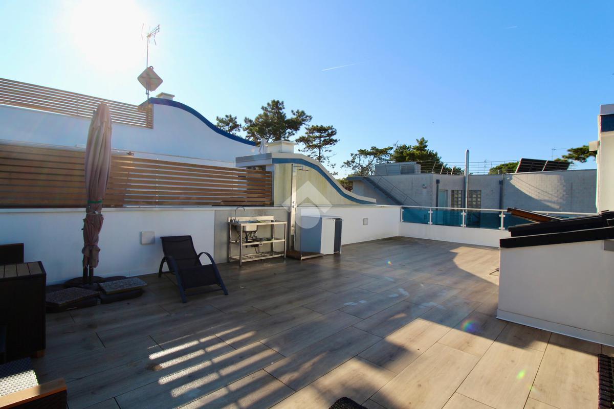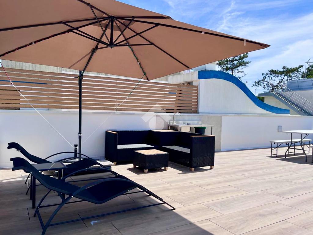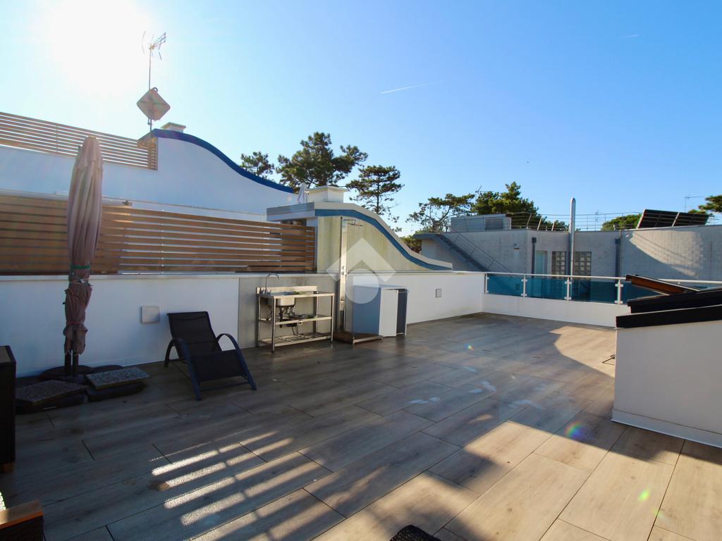 Dalla zona giorno passiamo alla terrazza all’ultimo piano tramite la scala interna, dove abbiamo la doccia, un lavabo, il locale caldaia, un pannello solare ed un salottino da esterno e si ha, inoltre, la possibilità di installare una piscina.