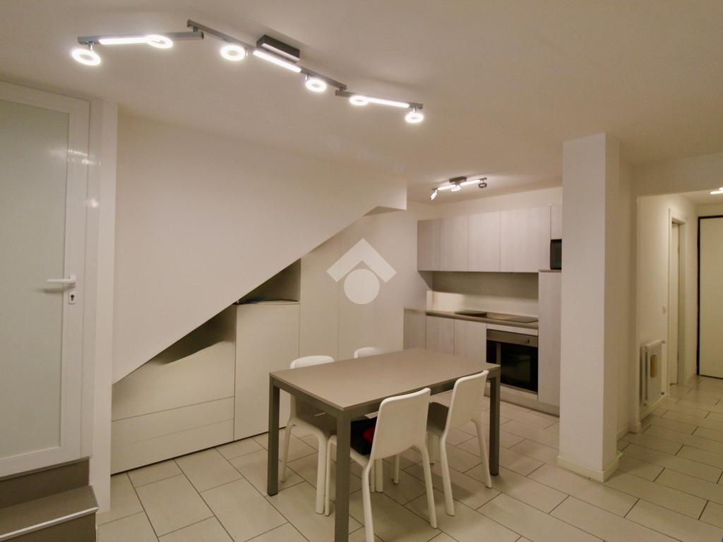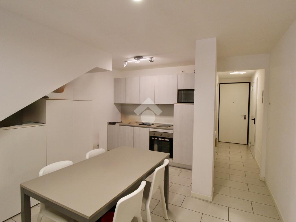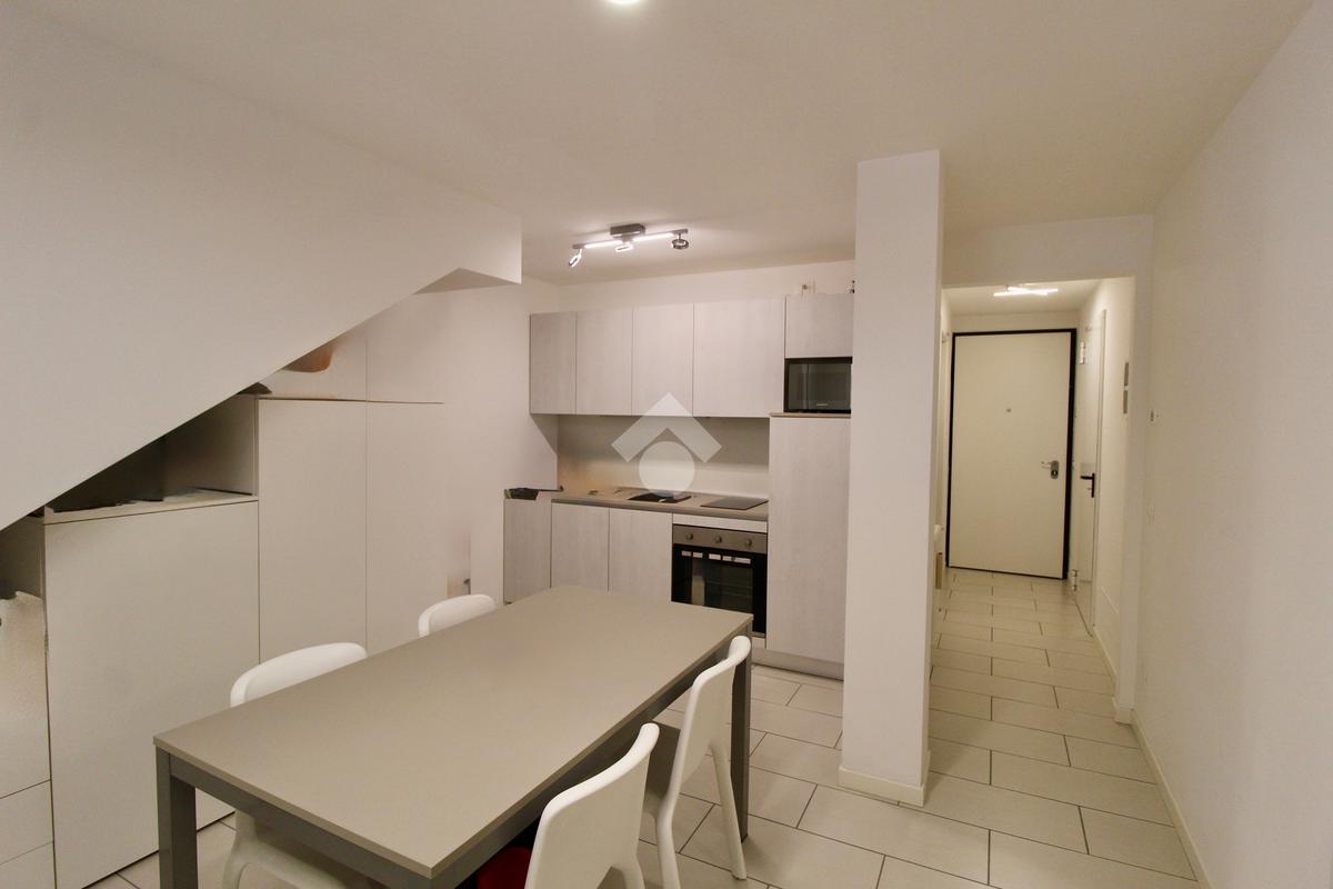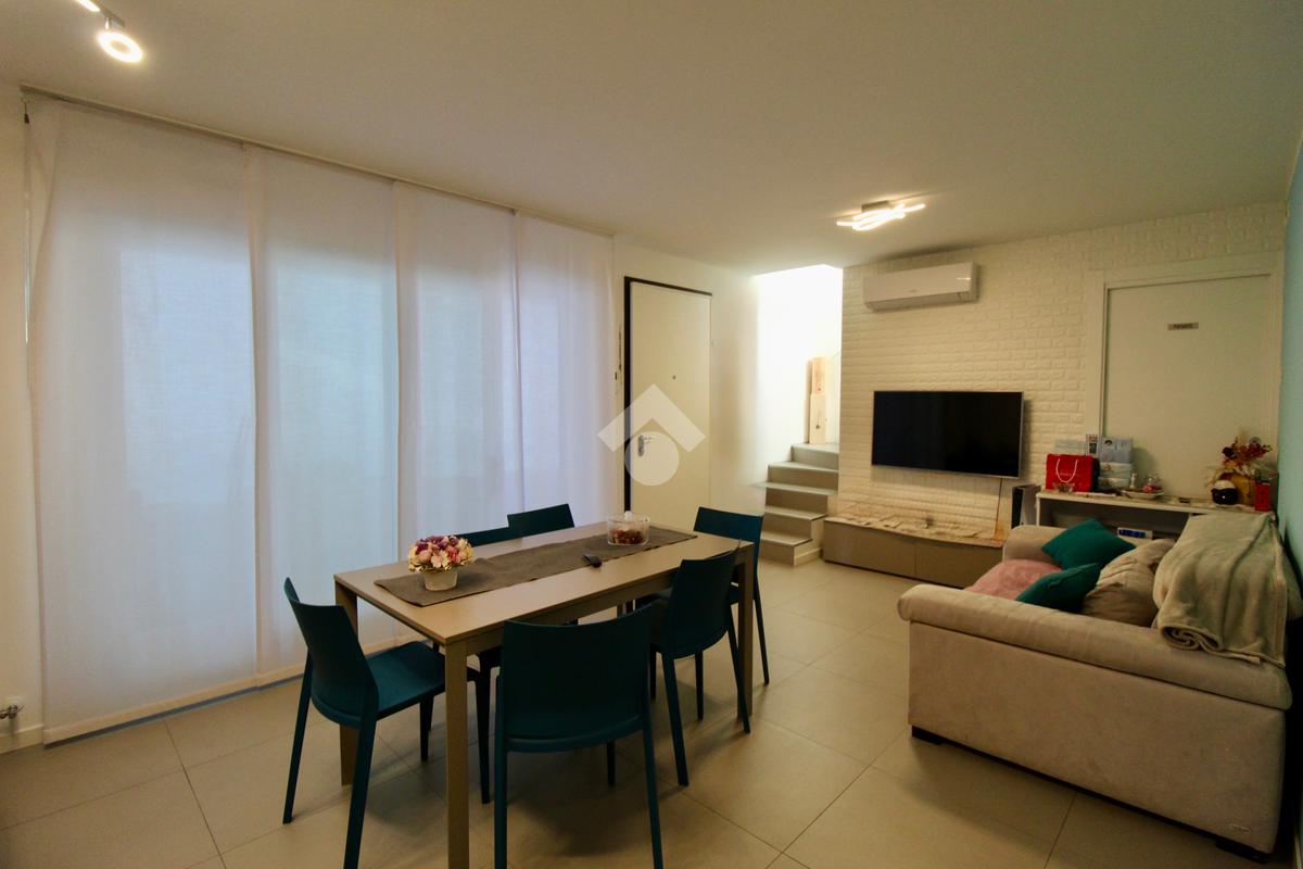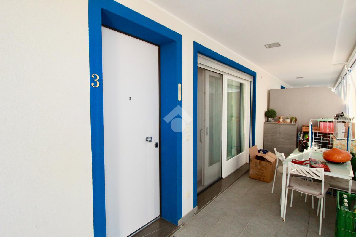 Dopo aver oltrepassato il cancello e percorso un tratto del marciapiede di ingresso del residence, ci troviamo nel primo terrazzino e, di fronte, al portoncino d’ingresso dell’immobile, dal quale si accede al locale pranzo soggiorno composto da cucina, con piano cottura a induzione, lavabo, pensili da cucina e, a completare, il divano letto ed il tavolo per sei persone.