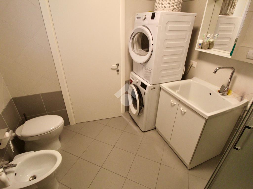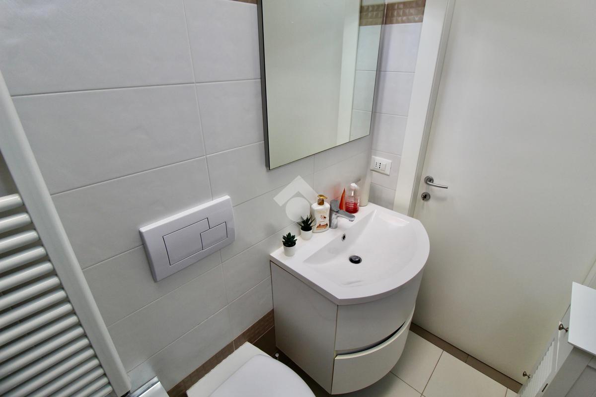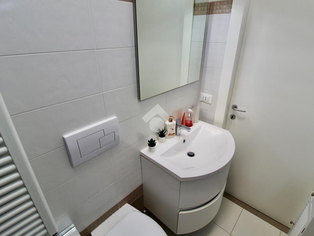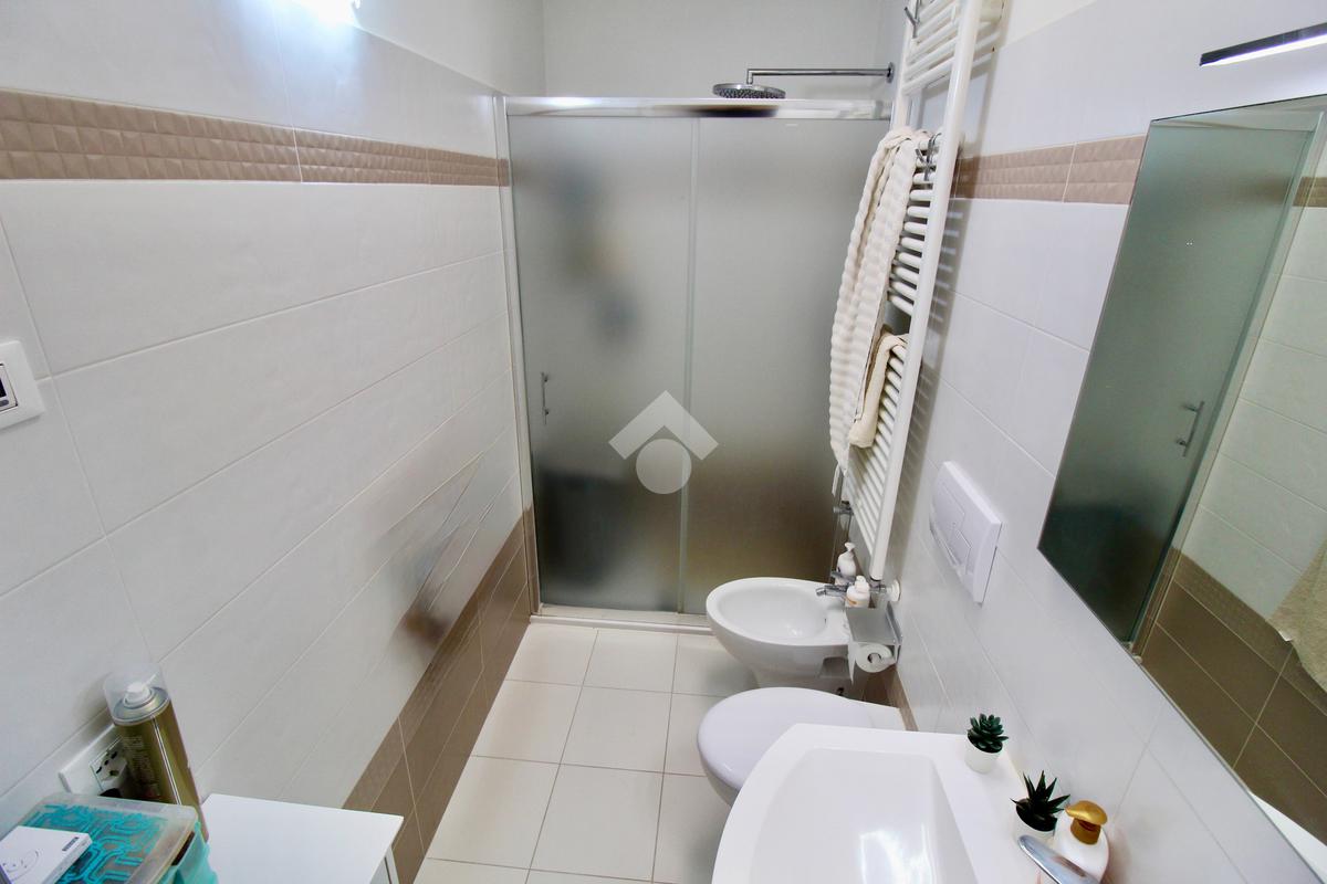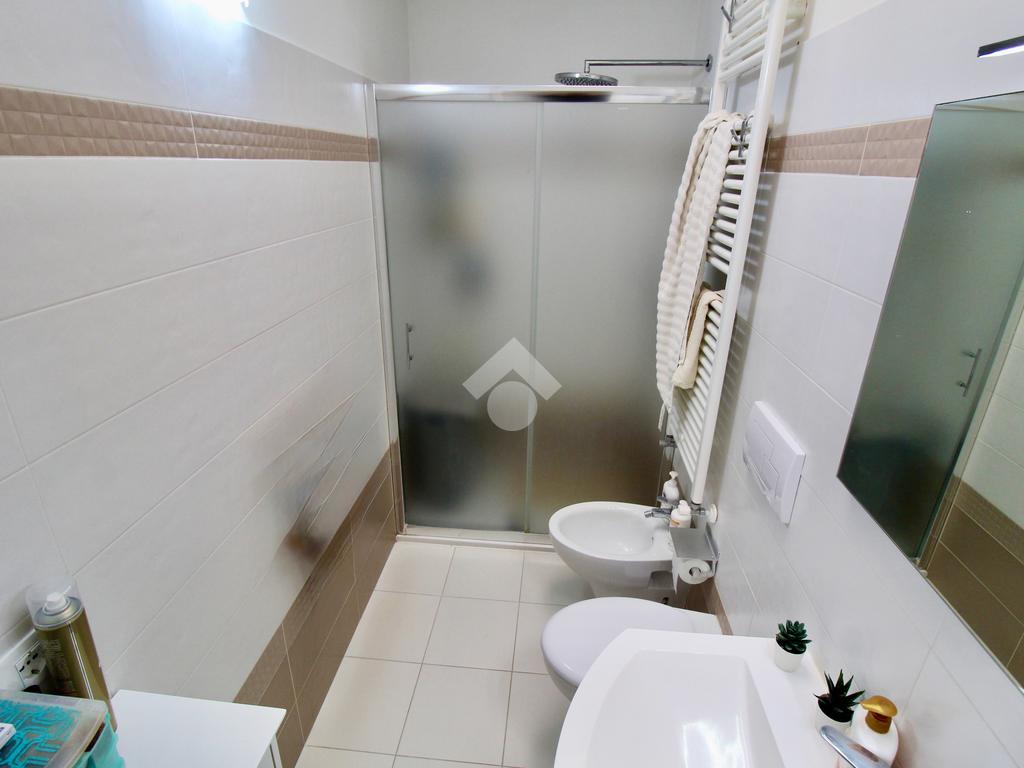 Dal disimpegno della zona notte, sulla sinistra, troviamo il bagno, finestrato e completo di tutti i servizi, compreso box doccia.