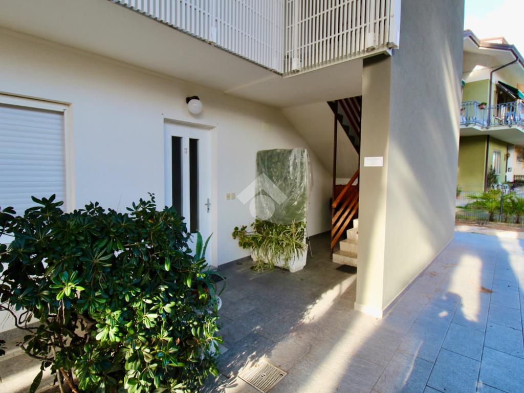 Mediante il cancello pedonale condominiale accediamo allo scoperto comune dove, sulla destra, vediamo la porta di ingresso dell’immobile sopracitato.