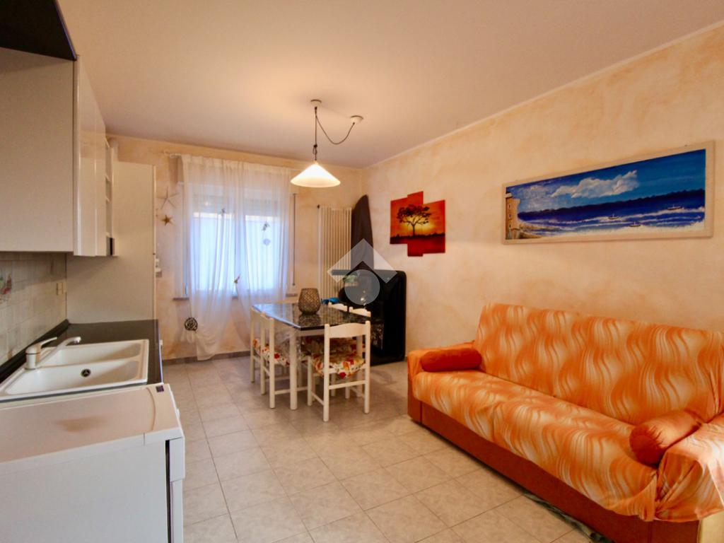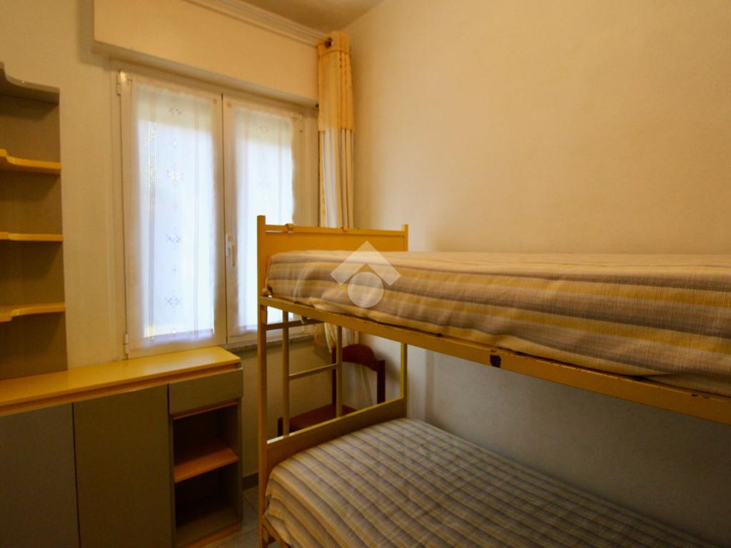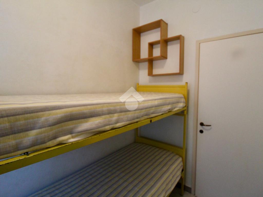 Entrando in appartamento, ci troviamo subito nella zona pranzo/giorno, composta da divano letto per due persone, tavolo per sei persone, cucina, arredi vari, lavatrice, lavastoviglie e forno. Dal disimpegno accediamo alla zona notte dove abbiamo la camera da letto matrimoniale, con armadio e credenza, una camera da letto singola con letto a castello ed il bagno, finestrato, completo di tutti i servizi e box doccia.